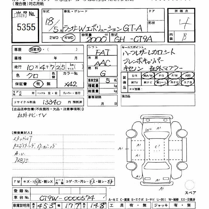 | RS EVOLUTION IX MR | GH-CT9A | 4G63MIVECターボ | Full-time 4WD | 5MT | 1997cc | 280ps(206kW)/6500rpm | AИ-95 | 2 856 000 |