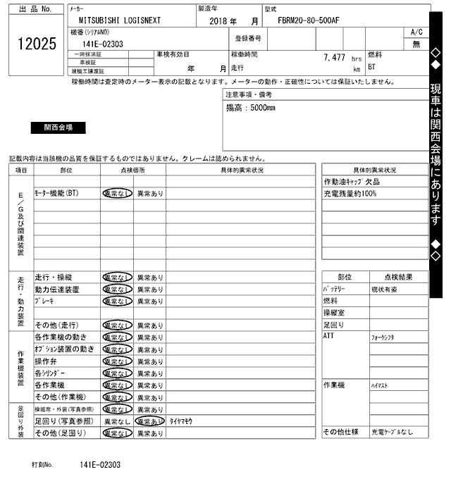 Статус выставлен на аукцион Лот 12025 Аукцион ARAI Kenki Дата аукциона 17.03.2026