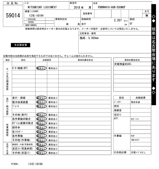 MITSUBISHI LOGISNEXT 2018 г., лот № 59014
