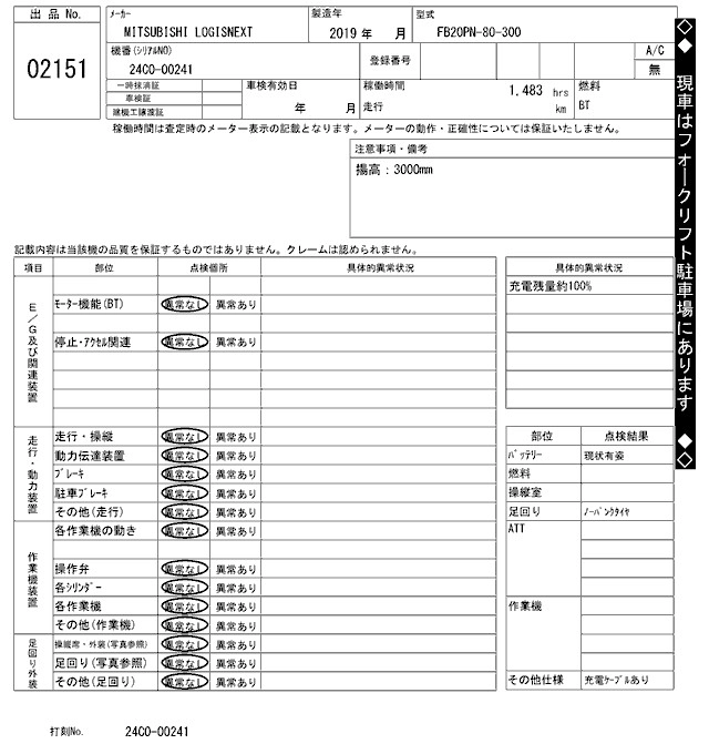 MITSUBISHI LOGISNEXT 2019 г., лот № 2151