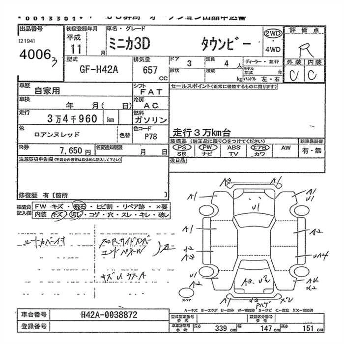 | Pg | GF-H42A | 3G83 | FF | 3AT | 657cc | 50ps(37kW)/6500rpm | AИ-92 | 898 000 | |