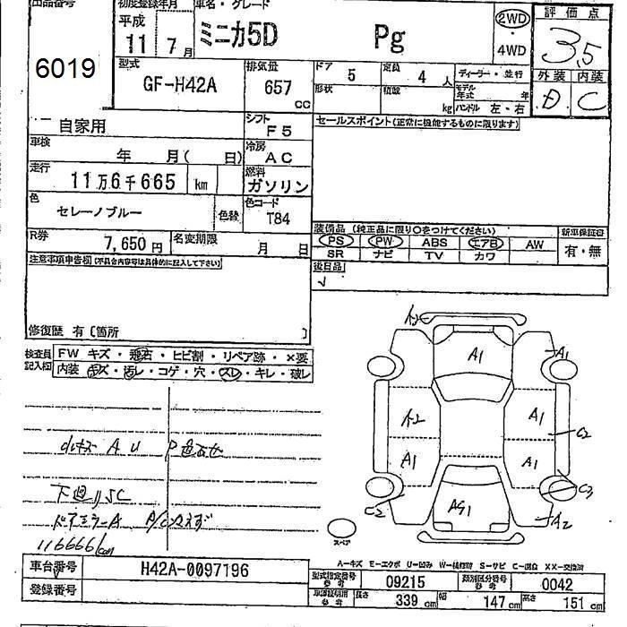 | Pg | GF-H42A | 3G83 | FF | 3AT | 657cc | 50ps(37kW)/6500rpm | AИ-92 | 898 000 | |