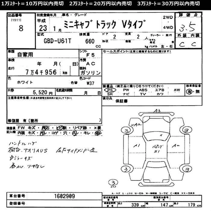 Стартовая цена авто на аукционе 20 000 ¥
