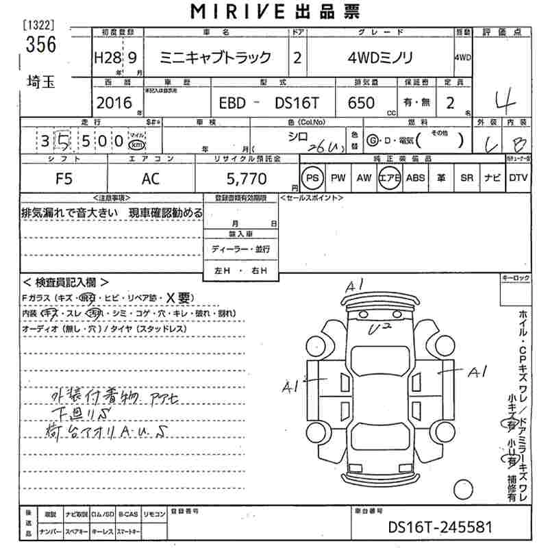 Статус выставлен на аукцион Лот 356 Аукцион MIRIVE Saitama Дата аукциона 18.03.2026