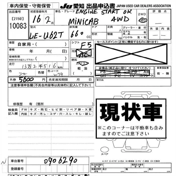 Статус выставлен на аукцион Лот 10083 Аукцион JU Aichi Дата аукциона 19.03.2026