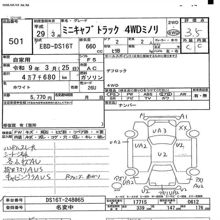 Статус выставлен на аукцион Лот 501 Аукцион JU Nagano Дата аукциона 17.03.2026
