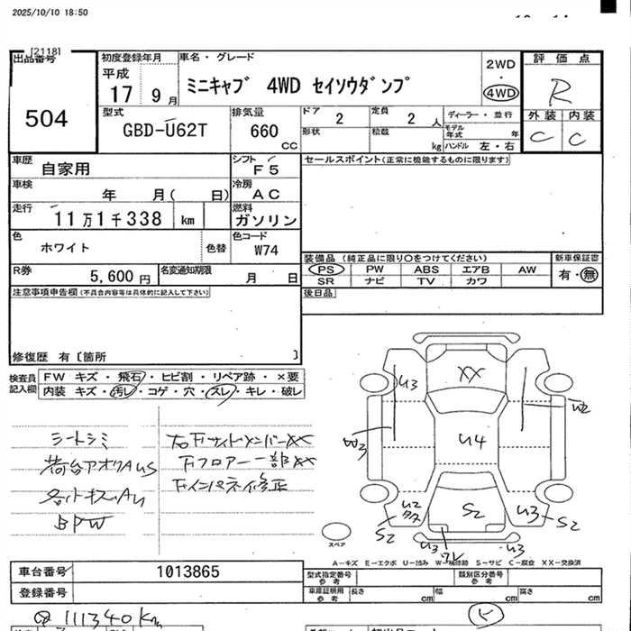 Год выпуска2005 Пробег 111 000 км КузовU62T Комплектация4WD CLEANING DUMP