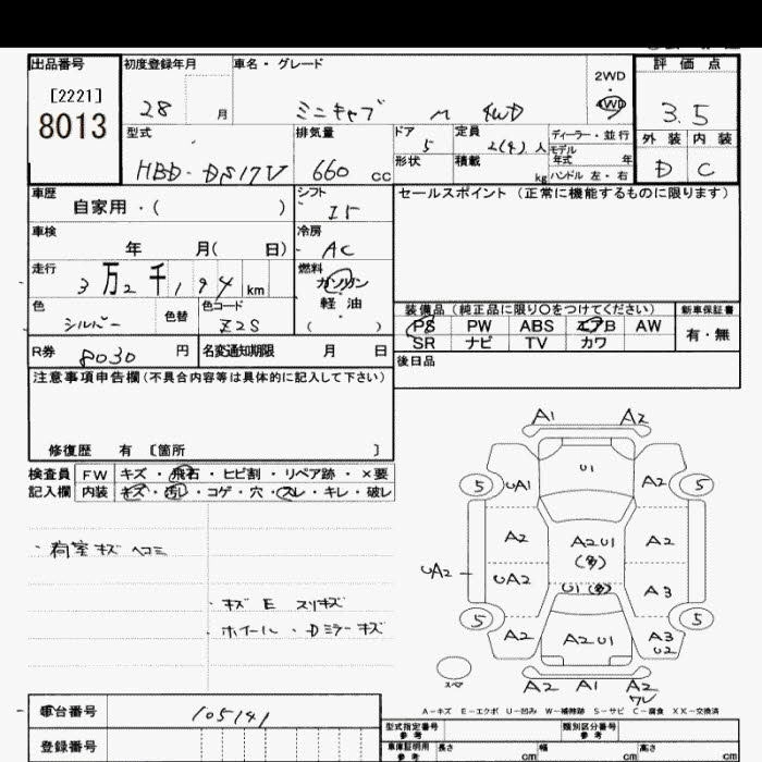 Статус выставлен на аукцион Лот 8013 Аукцион JU Saitama Дата аукциона 17.03.2026