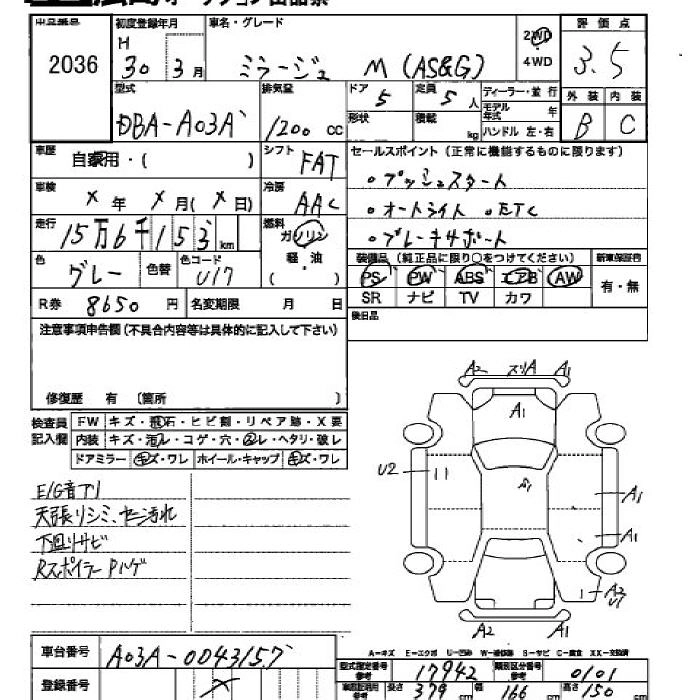 MITSUBISHI MIRAGE 2018 г., лот № 2036