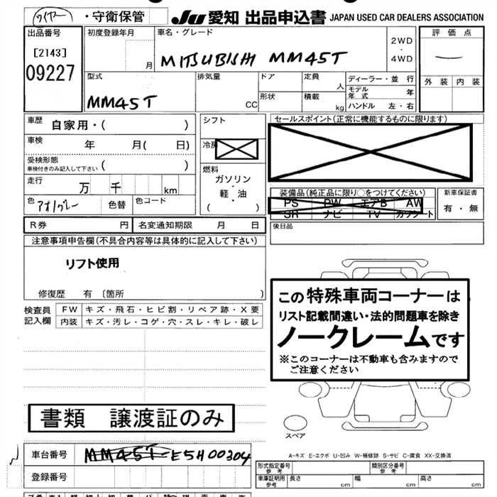 Статус выставлен на аукцион Лот 9227 Аукцион JU Aichi Дата аукциона 29.01.2026