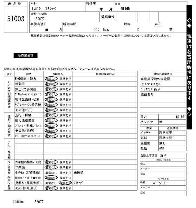 Статус выставлен на аукцион Лот 51003 Аукцион ARAI Kenki Дата аукциона 17.03.2026