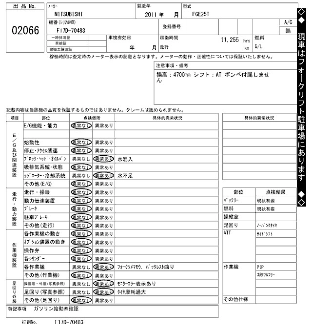 Статус выставлен на аукцион Лот 2066 Аукцион ARAI Kenki Дата аукциона 17.03.2026