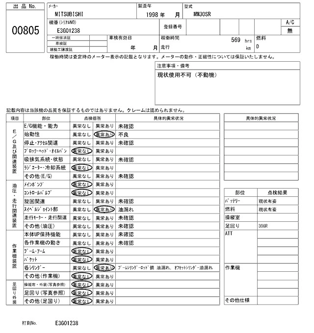 Год выпуска1998 Пробег 1 000 км КузовMM30SR Комплектация MINI YUATSU SHOVEL