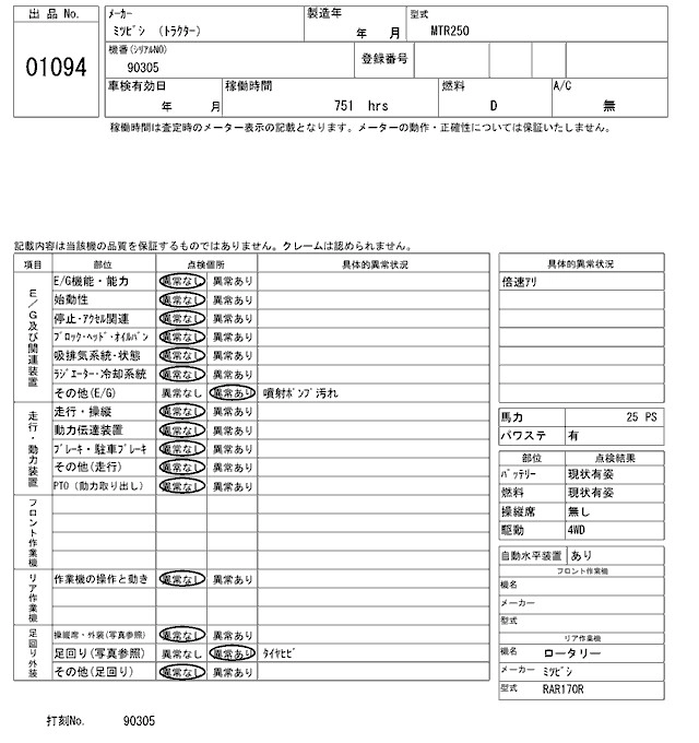 Статус выставлен на аукцион Лот 1094 Аукцион ARAI Kenki Дата аукциона 17.03.2026