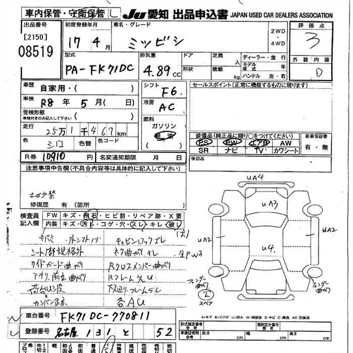 Статус выставлен на аукцион Лот 8519 Аукцион JU Aichi Дата аукциона 19.03.2026