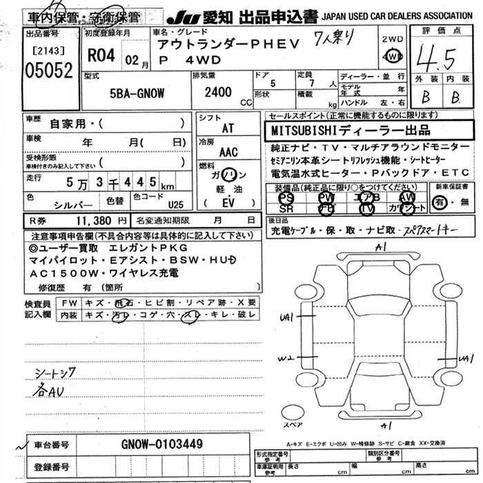 MITSUBISHI OUTLANDER PHEV 2022 г., лот № 5052