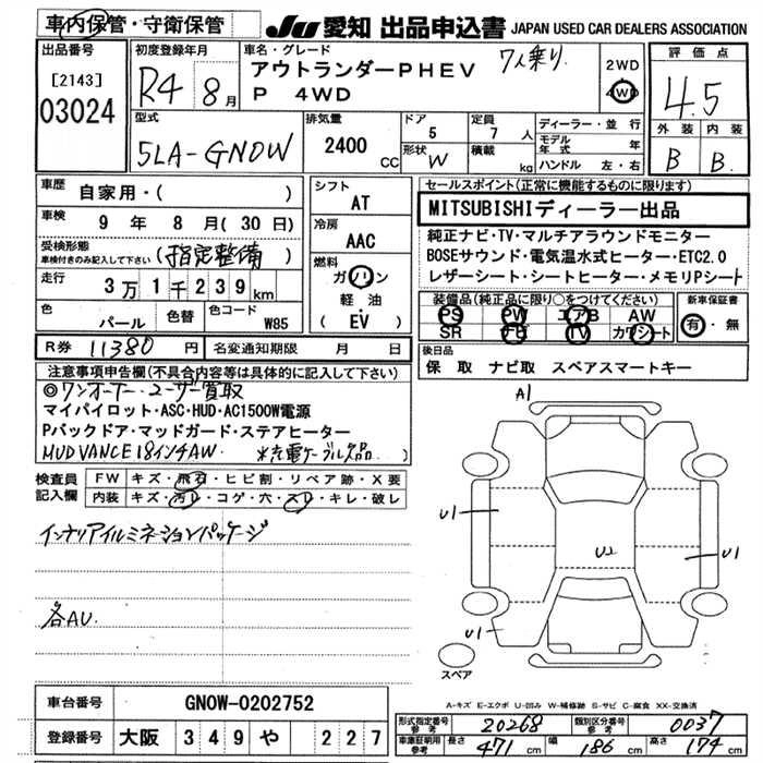 MITSUBISHI OUTLANDER PHEV 2022 г., лот № 3024