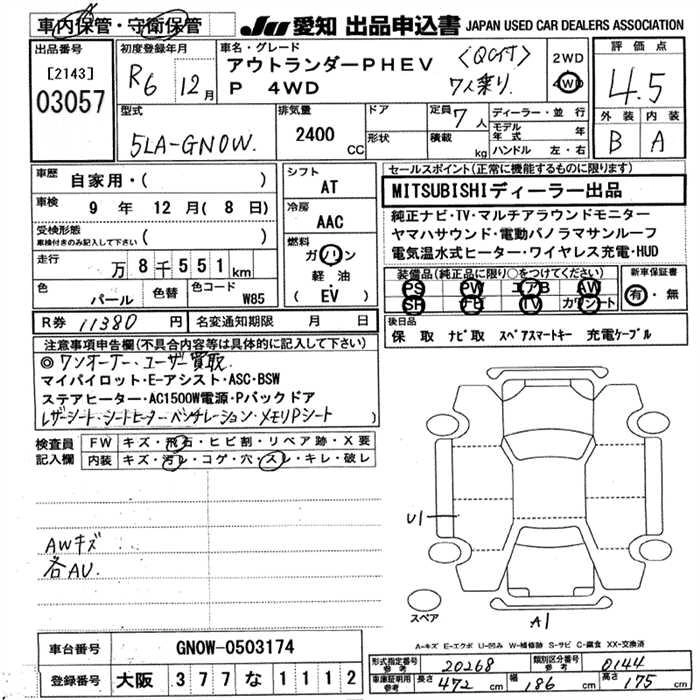 MITSUBISHI OUTLANDER PHEV 2024 г., лот № 3057