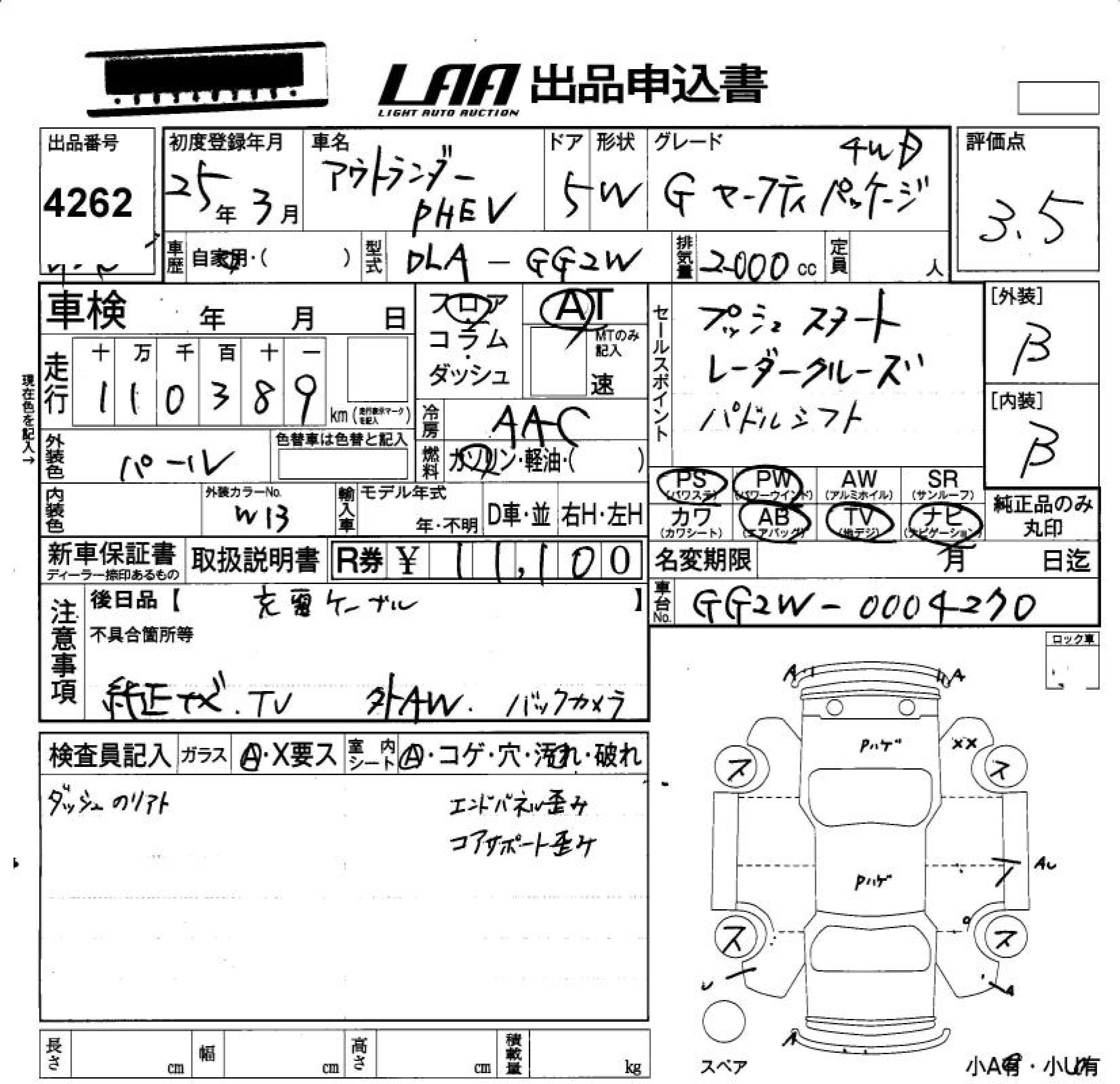 | G | DLA-GG2W | 4B11 | Full-time 4WD | CVT | 1998cc | 118ps(87kW)/4500rpm | AИ-92 | 3 569 000 | |