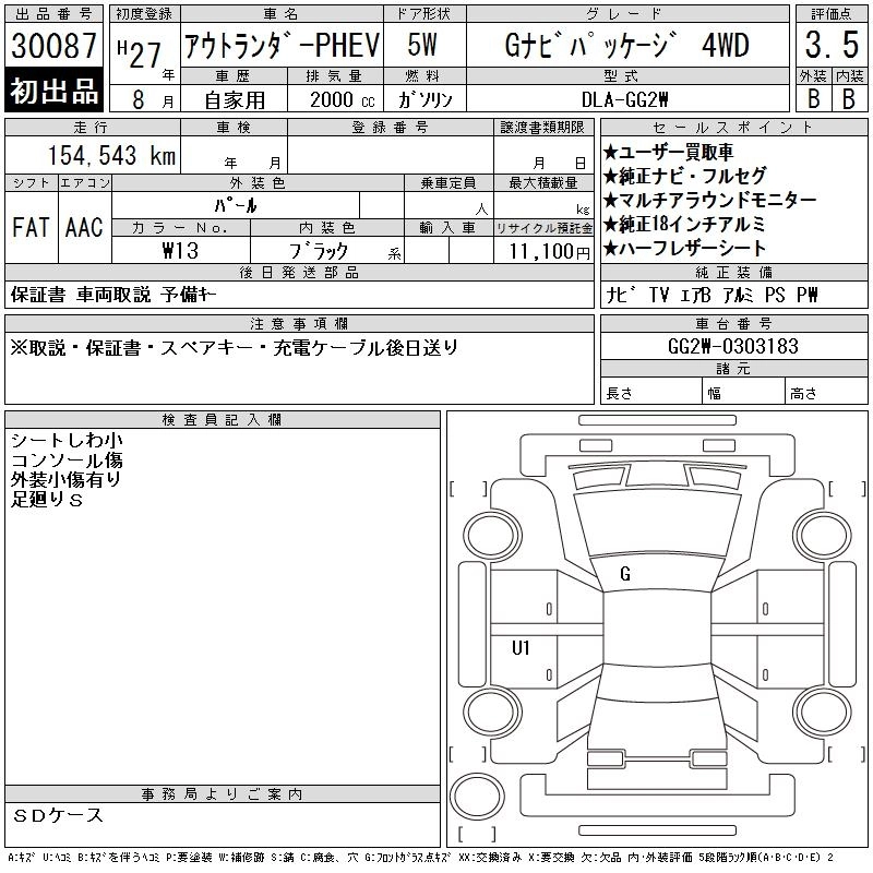 MITSUBISHI OUTLANDER PHEV 2015 г., лот № 30087