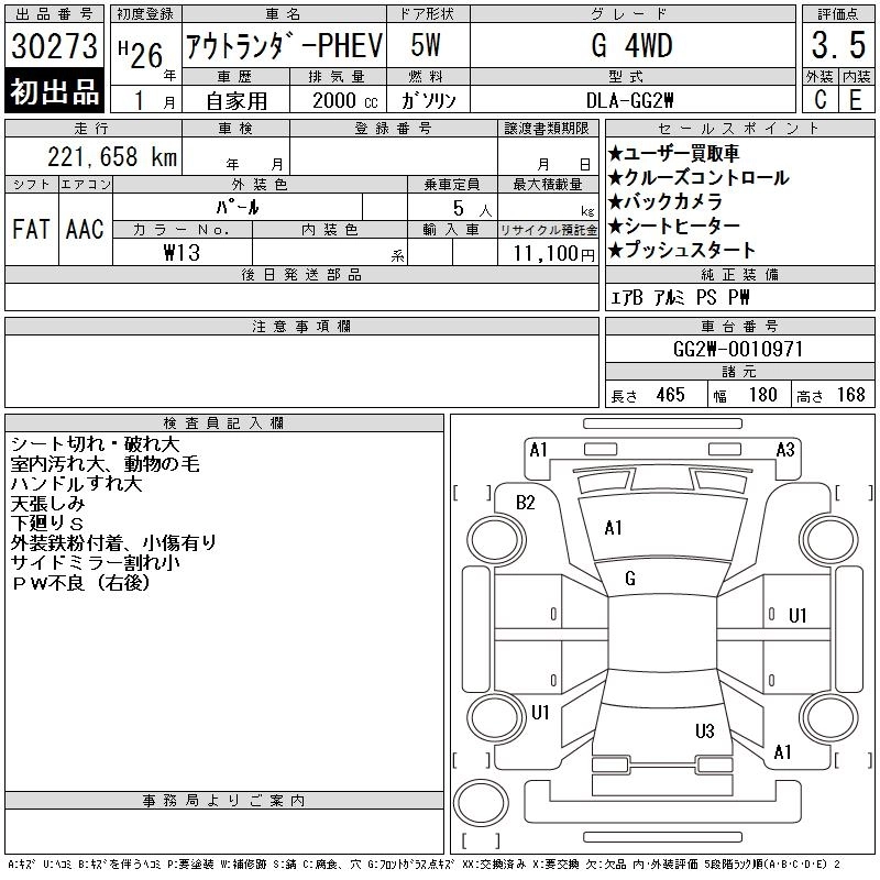 | G | DLA-GG2W | 4B11 | Full-time 4WD | CVT | 1998cc | 118ps(87kW)/4500rpm | AИ-92 | 3 642 500 | |