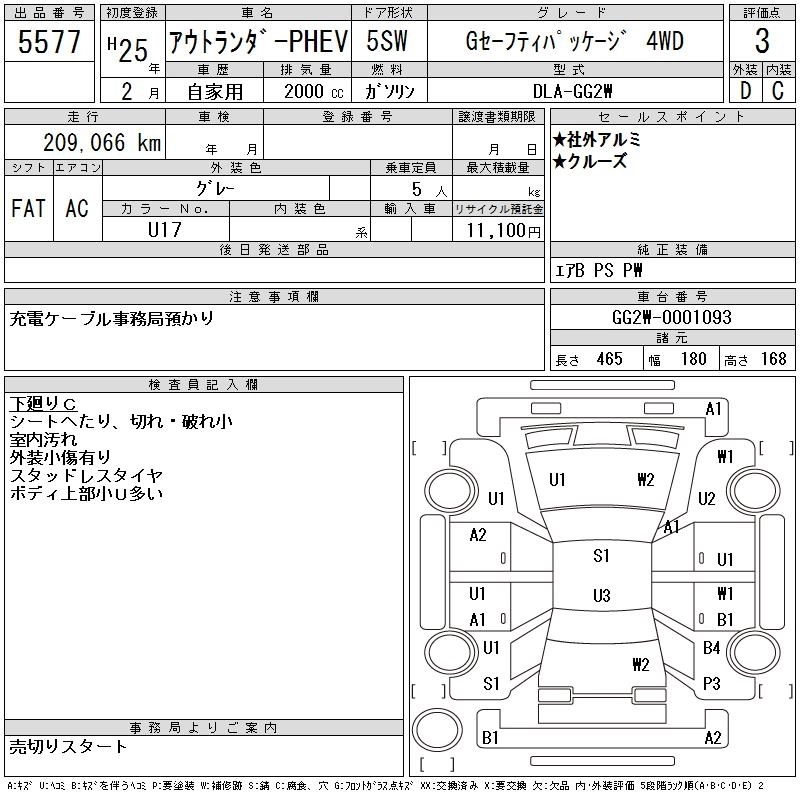 MITSUBISHI OUTLANDER PHEV 2013 г., лот № 5577