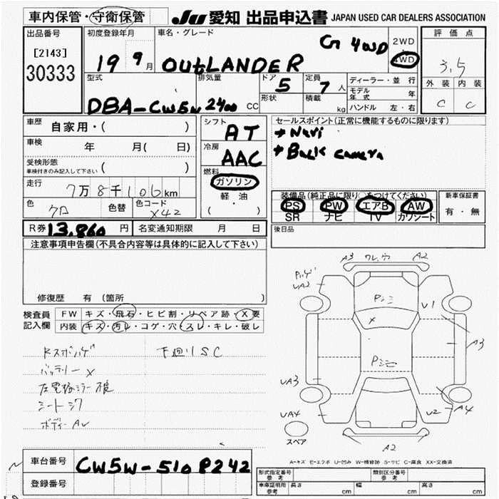 | 30G | DBA-CW6W | 6B31(MIVEC) | Full-time 4WD | 6AT | 2998cc | 220ps(162kW)/6250rpm | AИ-92 | 2 877 000 | |