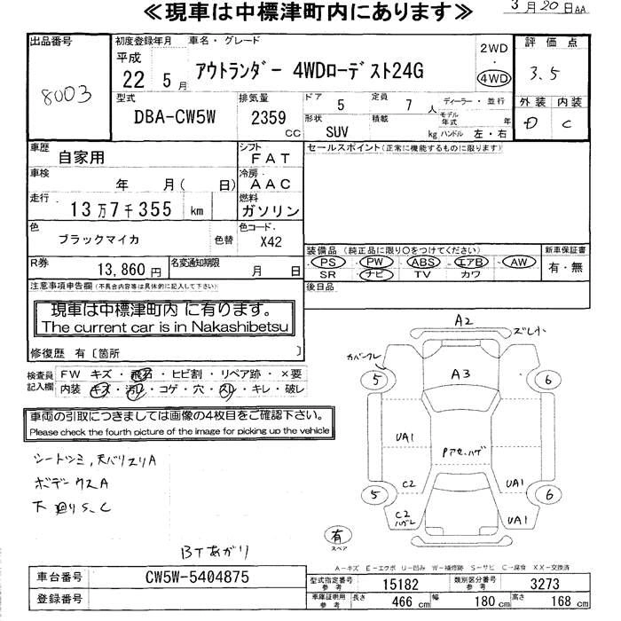| 24G PREMIUM | DBA-CW5W | 4B12(MIVEC) | Full-time 4WD | CVT | 2359cc | 170ps(125kW)/6000rpm | AИ-92 | 2 835 000 | |