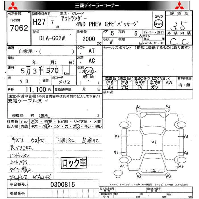 MITSUBISHI OUTLANDER 2015 г., лот № 7062