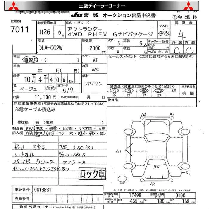 MITSUBISHI OUTLANDER 2014 г., лот № 7011