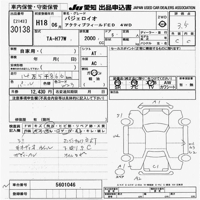 | ACTIVE FIELD EDITION 2.0 | TA-H77W | 4G94(GDI) | Full-time 4WD | 4AT | 1999cc | 136ps(100kW)/5500rpm | AИ-95 | 2 037 000 | |