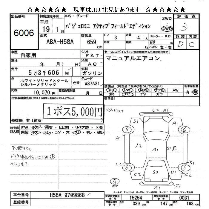 | ACTIVE FIELD EDITION | ABA-H58A | 4A30インタークーラーターボ | Part-time 4WD | 4AT | 659cc | 64ps(47kW)/6000rpm | AИ-92 | 1 638 000 | |