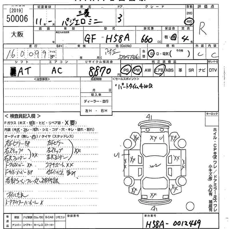 | X | GF-H58A | 4A30 | Part-time 4WD | 5MT | 659cc | 52ps(38kW)/6500rpm | AИ-92 | 1 290 000 | |