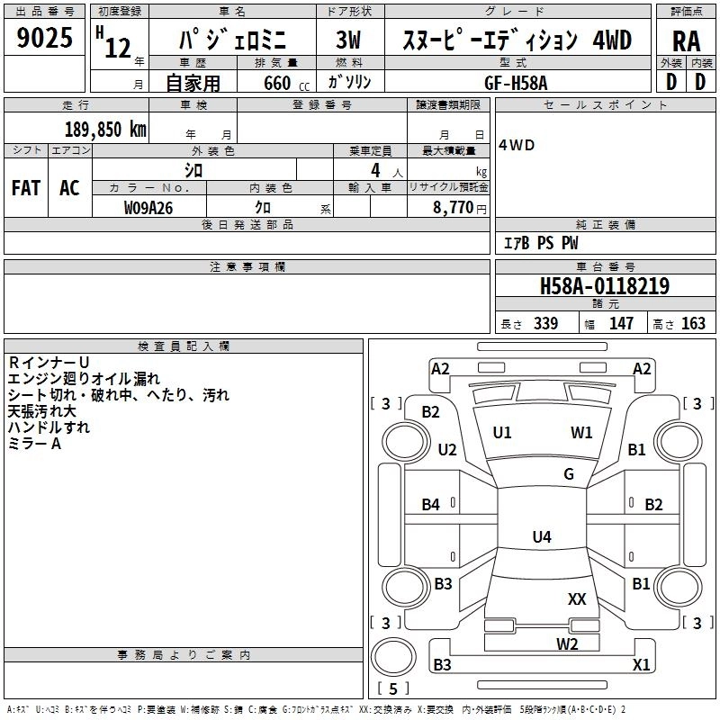| V | GF-H58A | 4A30インタークーラーターボ | Part-time 4WD | 5MT | 659cc | 64ps(47kW)/7000rpm | AИ-92 | 1 450 000 | |