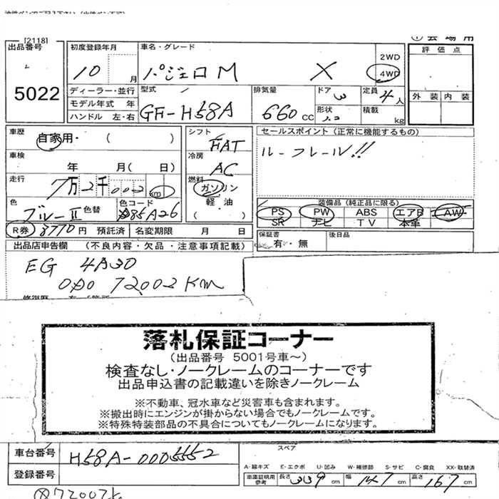 | X | GF-H53A | 4A30 | FR | 5MT | 659cc | 52ps(38kW)/6500rpm | AИ-92 | 1 188 000 | |