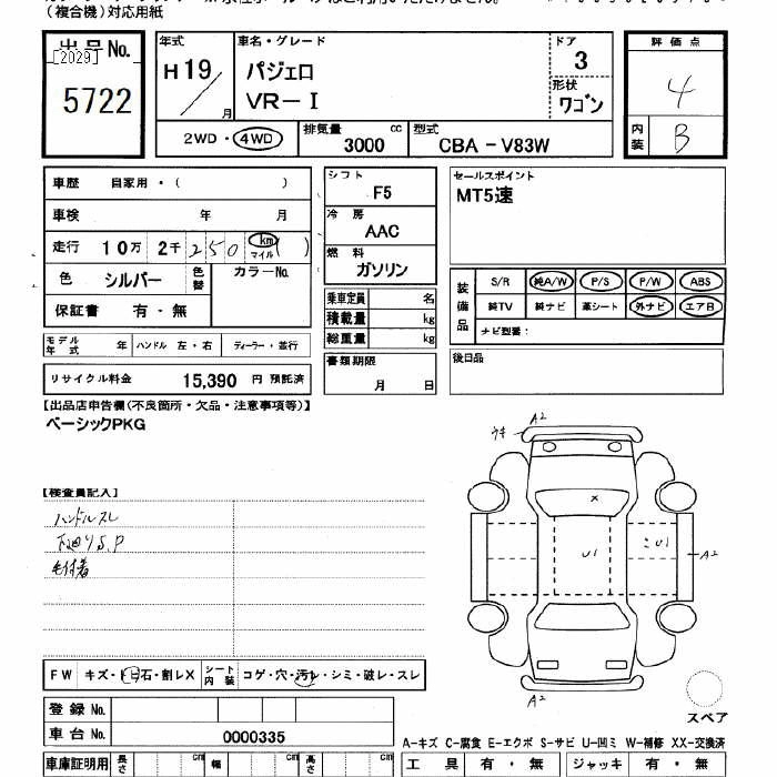 SHORT VR CBA-V83W 6G72 Full-time 4WD 5MT 2972cc 178ps(131kW)/5250rpm AИ-92 2 415 000
