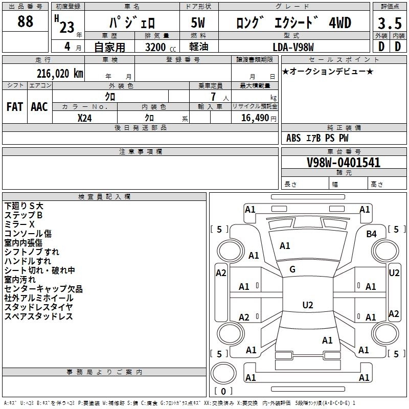| SHORT VR-II | LDA-V88W | 4M41 | Full-time 4WD | 5AT | 3200cc | 190ps(140kW)/3500rpm | Дизельное топливо | 3 843 000 | |