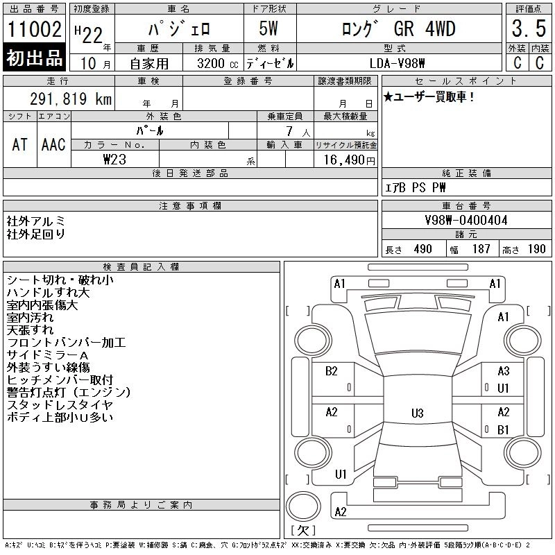 | LONG EXCEED | LDA-V98W | 4M41(コモンレール type DI-D インタークーラーターボチャージャー付) | Full-time 4WD | 5AT | 3200cc | 190ps(140kW)/3500rpm | Дизельное топливо | 4 116 000 | |