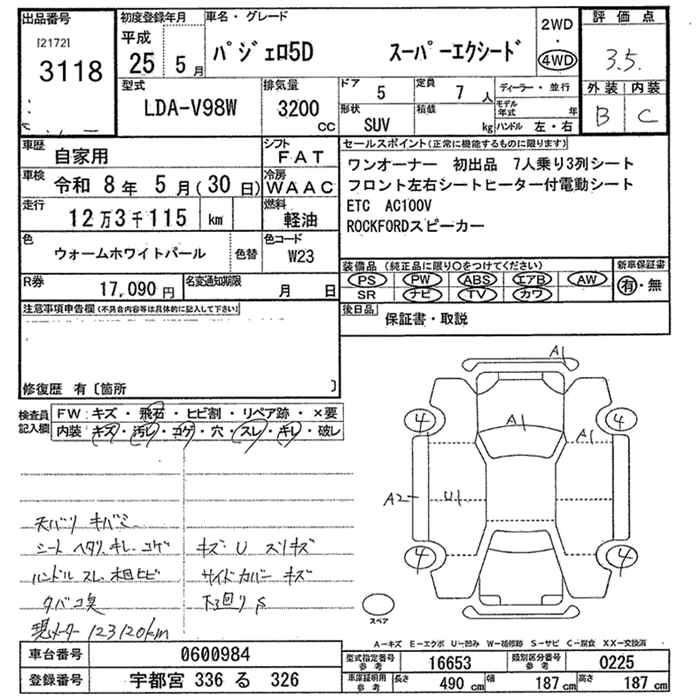 Год выпуска2013 Пробег 123 000 км КузовV98W Комплектация4WD SUPER EXCEED