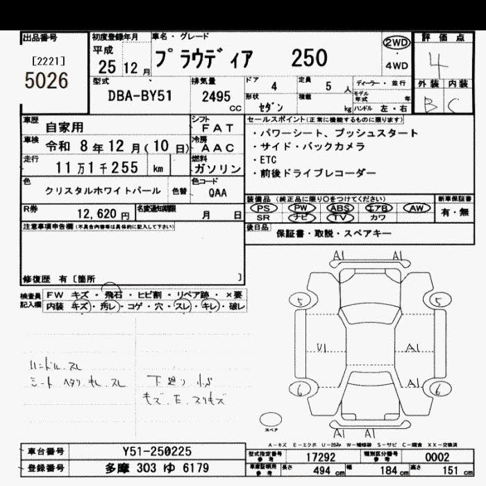 Статус выставлен на аукцион Лот 5026 Аукцион JU Saitama Дата аукциона 17.03.2026