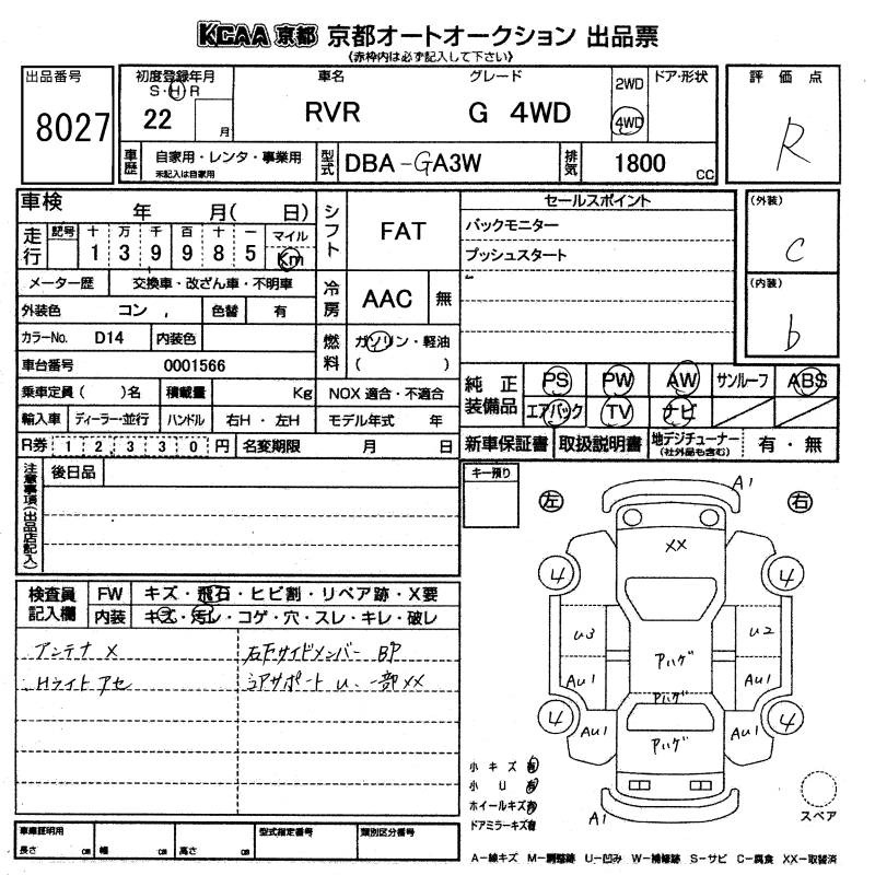 | M | DBA-GA3W | 4B10(MIVEC) | Full-time 4WD | CVT | 1798cc | 139ps(102kW)/6000rpm | AИ-92 | 2 184 000 | |