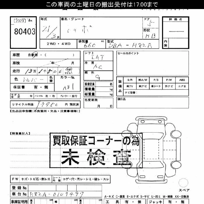 | S | DBA-H82A | 3G83 | FF | 3AT | 657cc | 50ps(37kW)/6500rpm | AИ-92 | 934 500 | |