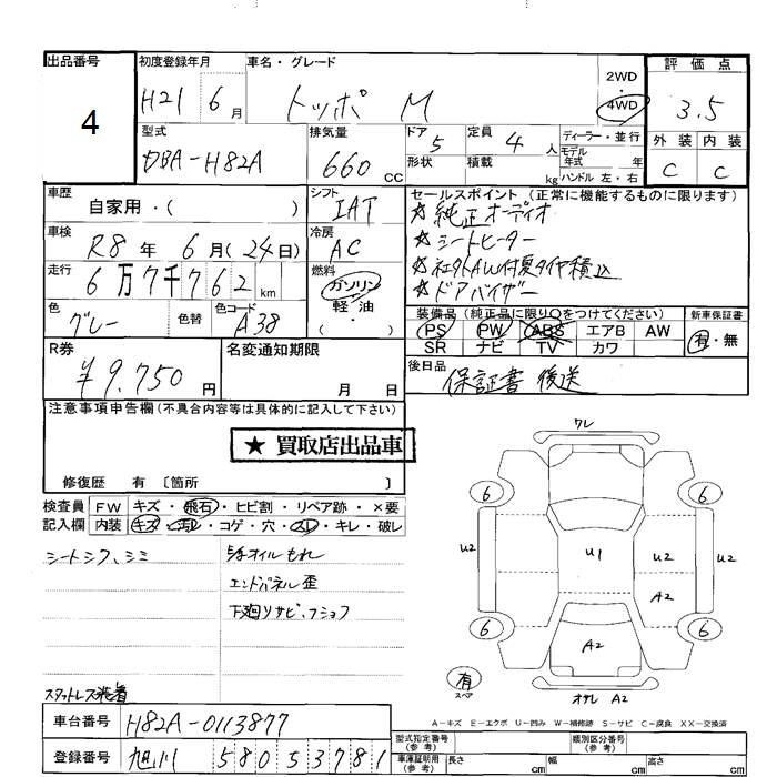| T | CBA-H82A | 3G83インタークーラーターボチャージャー | FF | 4AT | 657cc | 64ps(47kW)/6000rpm | AИ-92 | 1 323 000 | |