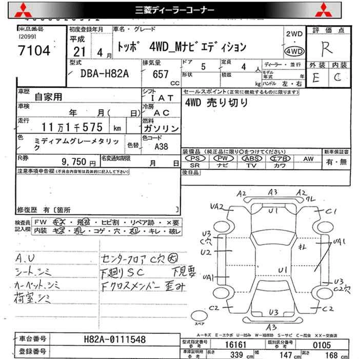 | G | DBA-H82A | 3G83 | FF | 4AT | 657cc | 50ps(37kW)/6500rpm | AИ-92 | 1 197 000 | |
