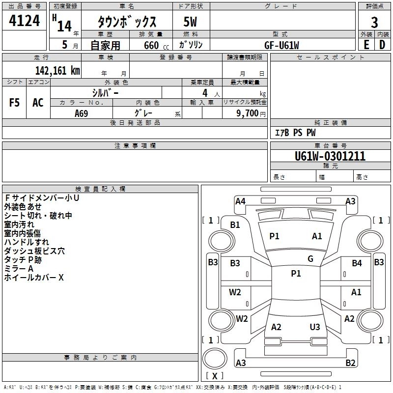 | SX | TA-U61W | 3G83 | FR | 4AT | 657cc | 48ps(35kW)/6000rpm | AИ-92 | 1 185 000 | |