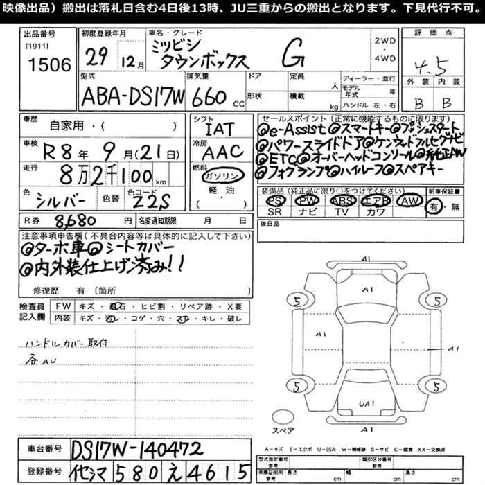 | G SPECIAL | ABA-DS17W | R06A | Full-time 4WD | 4AT | 658cc | 64ps(47kW)/6000rpm | AИ-92 | 1 814 400 | |