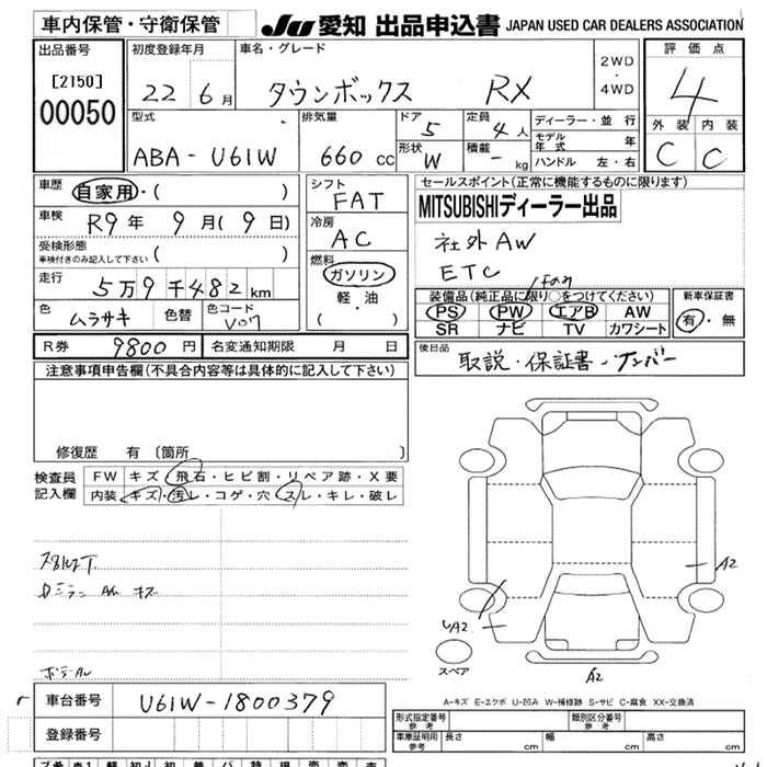 | LX | CBA-U61W | 3G83 | FR | 4AT | 657cc | 48ps(35kW)/6000rpm | AИ-92 | 1 334 000 |