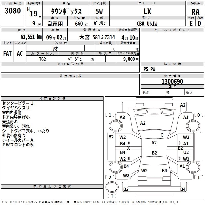 | LX EXCEED PACKAGE | CBA-U61W | 3G83 | FR | 4AT | 657cc | 48ps(35kW)/6000rpm | AИ-92 | 1 334 550 | |
