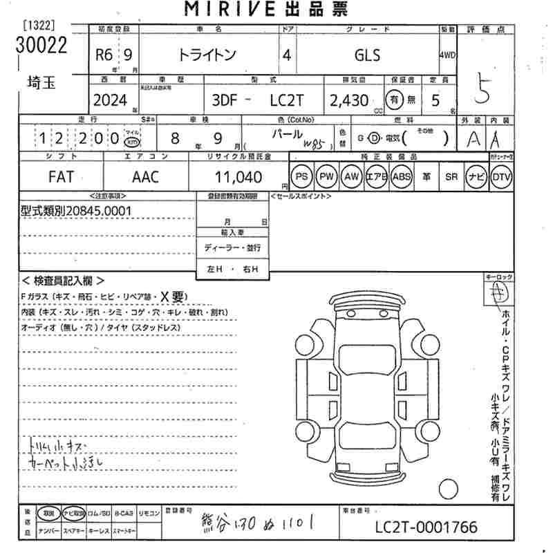 Статус выставлен на аукцион Лот 30022 Аукцион MIRIVE Saitama Дата аукциона 18.03.2026