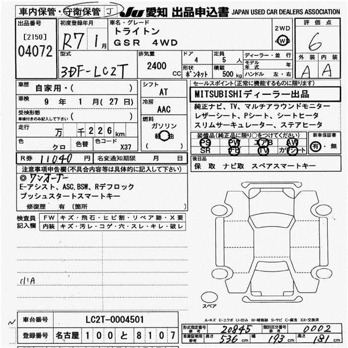 Статус выставлен на аукцион Лот 4072 Аукцион JU Aichi Дата аукциона 19.03.2026